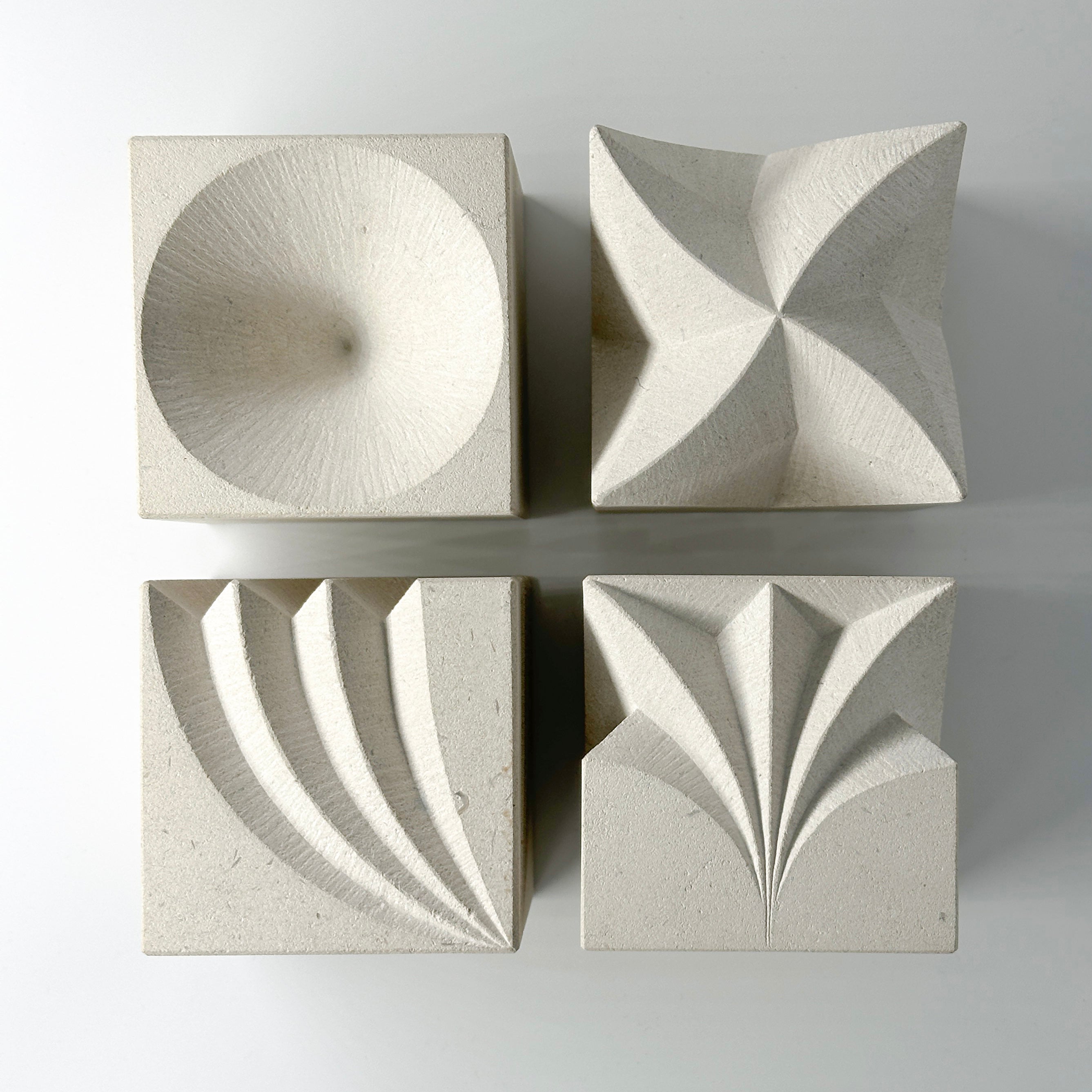 Working smaller allows the geometry to feel focused and intimate. The same precision, rhythm and careful craftsmanship found in my larger carvings is fully present here, concentrated into compact, tactile forms that carry their own quiet presence.