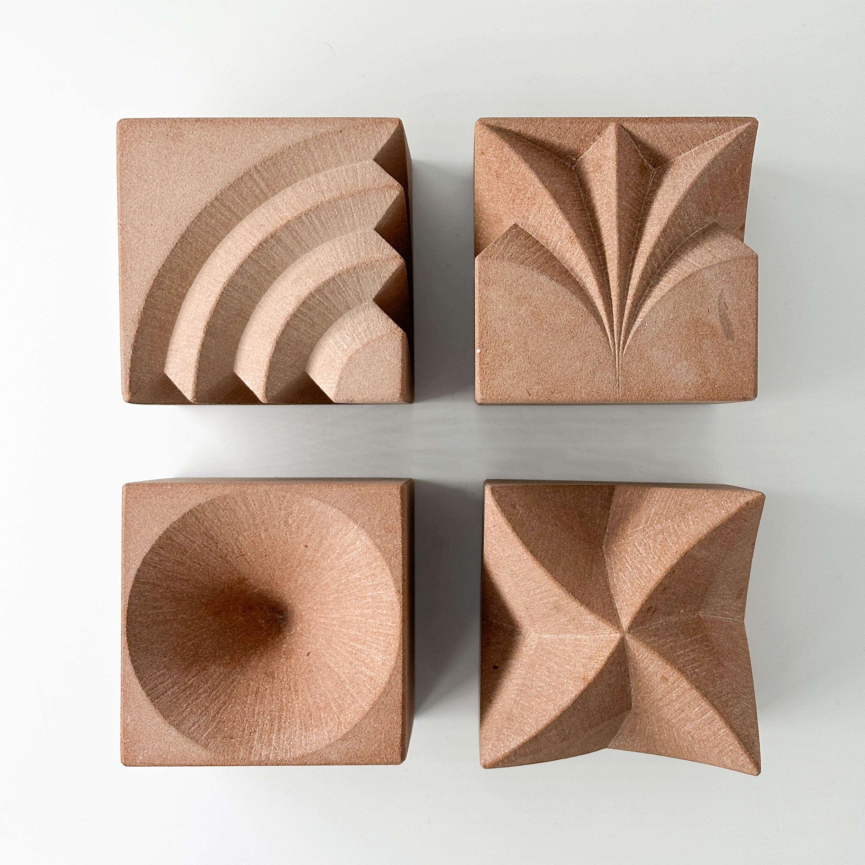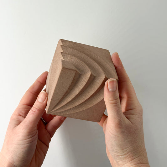 Working smaller allows the geometry to feel focused and intimate. The same precision, rhythm and careful craftsmanship found in my larger carvings is fully present here, concentrated into compact, tactile forms that carry their own quiet presence.