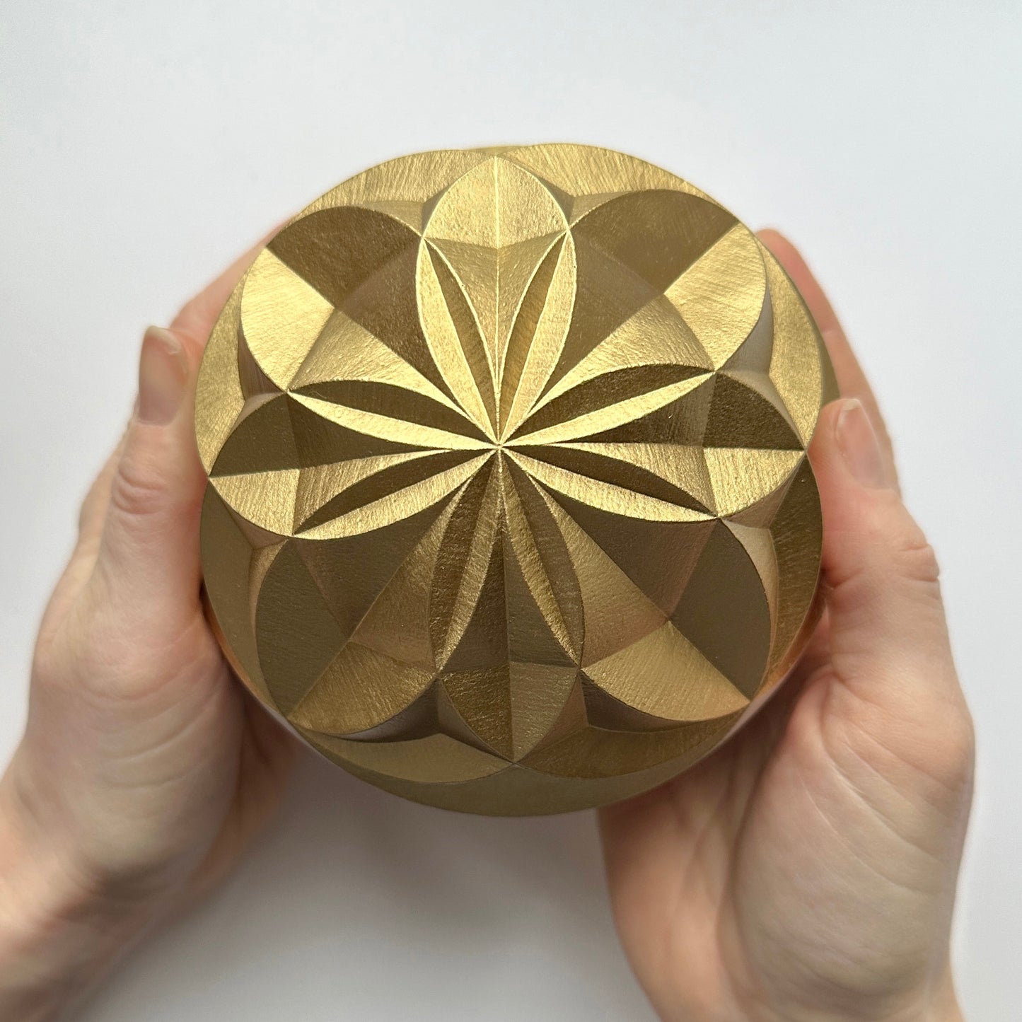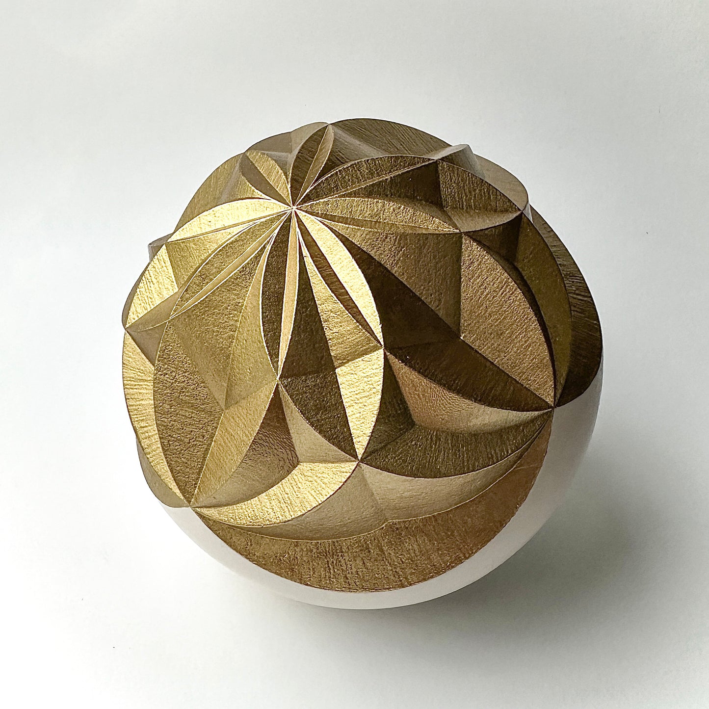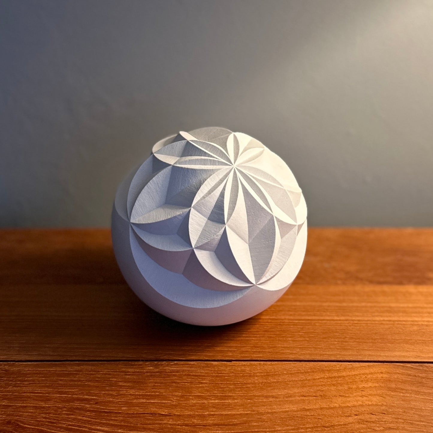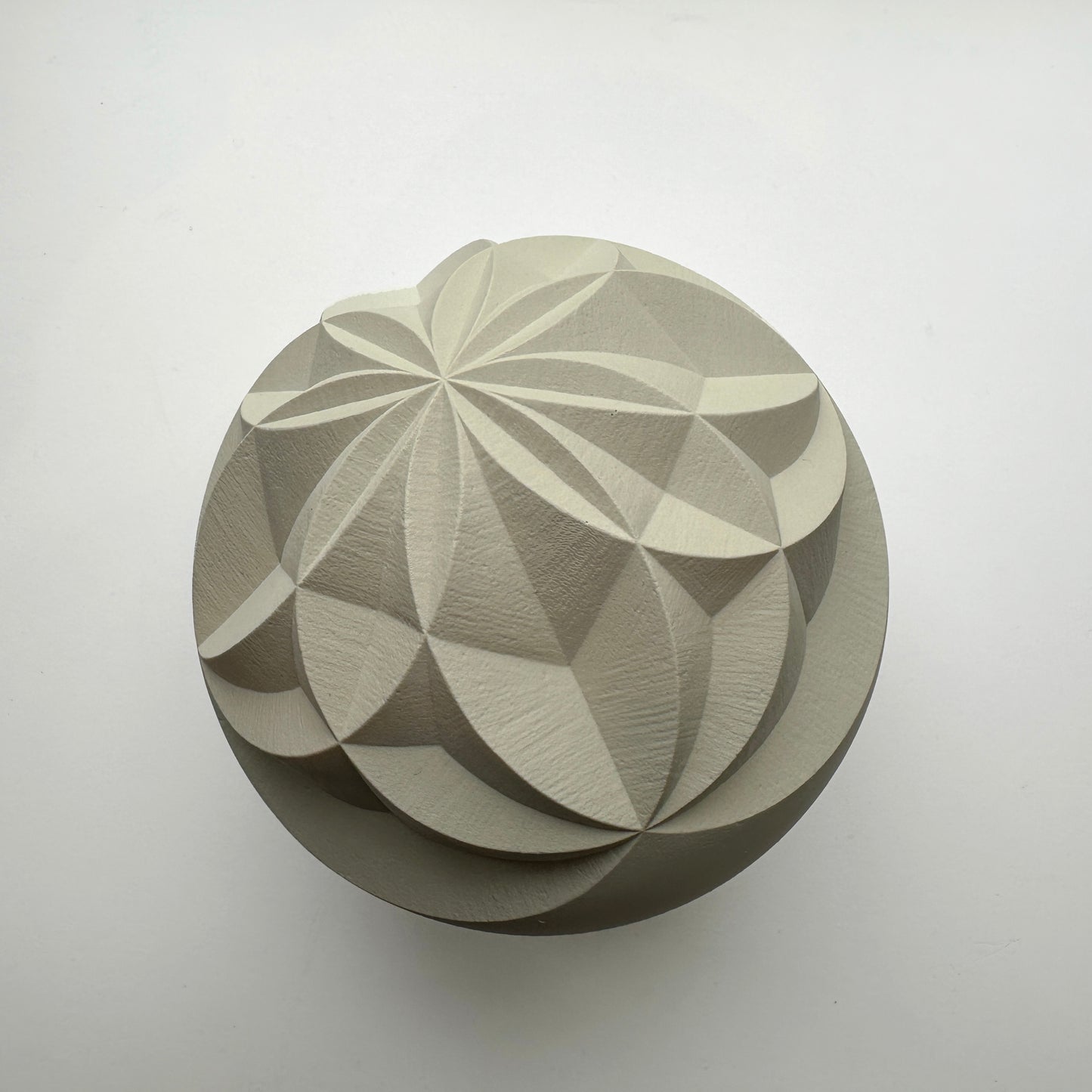 This is a limited edition Jesmonite cast. The original sculpture was a commission which Zoë undertook for for Canford School, to celebrate their centenary. The stone sculpture that measures 35 cm radius sits on a plinth in the school grounds. Before installation it was 3D scanned, reduced in size and printed to create this limited edition in Jesmonite.