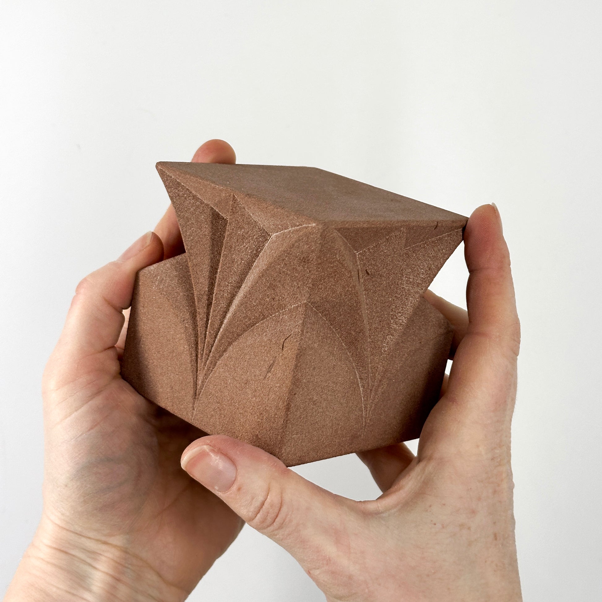Despite its compact size, Pello holds a purposeful presence. The upward shift in its structure gives it a hopeful, almost buoyant quality, echoing the focused rhythm of its making. It sits comfortably in the hand and displays beautifully on a shelf or desk, offering a subtle reminder of progress, growth and forward motion.